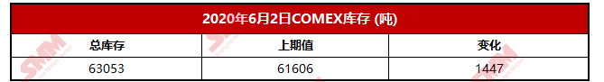 【SMM 数据】2020年6月2日COMEX库存
