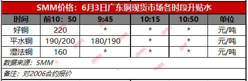 【SMM价格】6月3日广东铜现货市场各时段升贴水(第一时段)