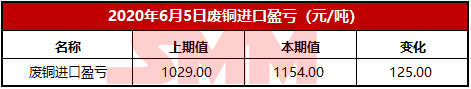 【SMM 数据】2020年6月5日1#光亮铜线精废价差