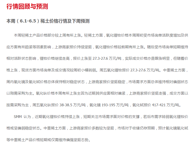 6月5日SMM中国稀土市场周报
