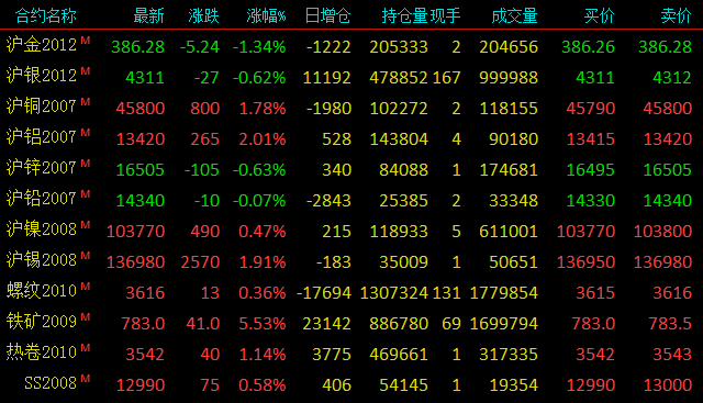 铜:今日沪铜主力合约早间开于45670元/吨。昨夜夜盘铜价接近46000元/吨关口后,多头获利离场,今日开盘后多头延续夜盘减仓操作,铜价下跌至日内最低位45430元/吨,在多空博弈之间短暂横盘于45480元/吨位置。而后空平多入拉动铜价持续上涨,重回日均线上方至45780元/吨,午前铜价小幅回调,收于45690元/吨。午后开盘,铜价短暂下跌,而后多头接连入场助推铜价继续冲高,攀至日内最高点45960元/吨。但上涨动能不足,多方面临46000关口选择减仓离场,铜价小幅下跌最终收于45800元/吨,涨800元/吨,涨幅1.78%。今日沪铜主力合约日内减仓1980手,至10.2万手,主要表现为空头减仓;成交量增加0.9万手,至11.8万手;远月合约分层次增仓。日内沪铜走高,主因受国际原油价格大幅反弹联动,因OPEC+同意将历史性减产延长一个月,市场风险偏好受提振,助推美油和布油持续上涨。另美国5月失业率较前值有所下降,加速市场乐观情绪升温,亦支撑铜价上冲。 目前沪铜收阳,延续涨势,铜价上跳远离下方均线,KDJ开口持续上扩,技术面看利好铜价。晚间等待外盘指引,测试多头能否持续发力,支持沪铜上冲46000关口