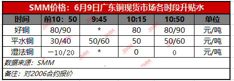 【SMM价格】6月9日广东铜现货市场各时段升贴水(第三时段)