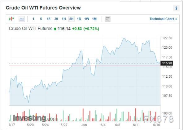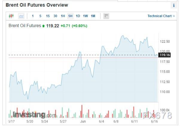 与此同时,石油价格依旧在爬升。6月6日开始,WTI和布伦特原油期货价格再次升上120美元/桶,并在该价格附近震荡。