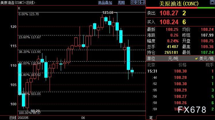 周一(6月20日),国际油价在动荡的市况中走强,扭转了早盘跌势。尽管全球央行加息给市场带来压力,但供应紧张料该过对全球经济增长和燃料需求放缓的担忧,NYMEX原油可能在107.94美元附近止跌。