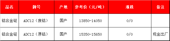 注:进口自提为宁波港ADC12现金自提价格