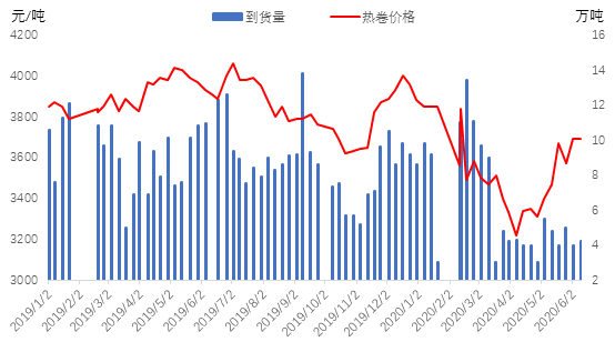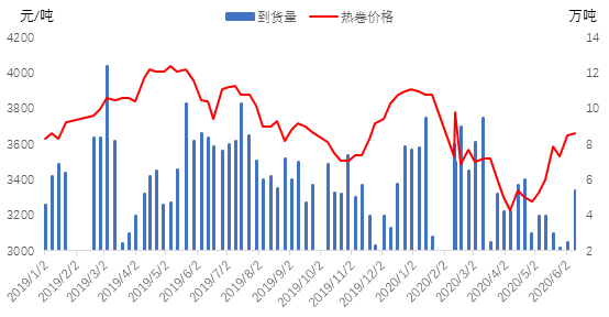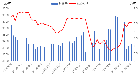 图3:天津市场到货量与现货价格对比