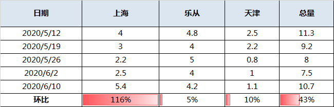 本周总体到货量止降转增。主要由于,上海市场部分北方资源受船期影响,本周集中到货,导致本周到货量大幅增加,其他两个市场到货相对稳定。