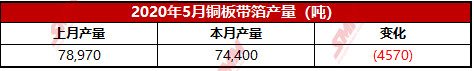 2020年5月铜板带箔产量