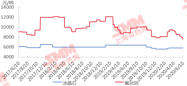 SMM6月10日讯: 五月上旬至月末,无水氟化铝价格下行趋势较四月有所放缓,SMM无水氟化铝报价...