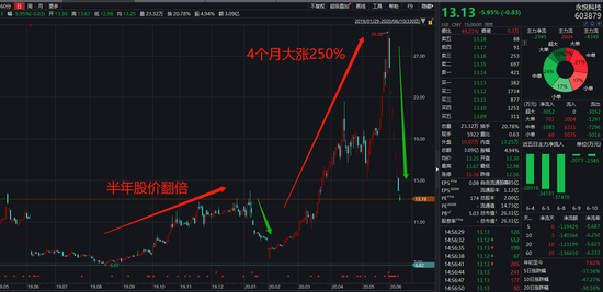 这个10多亿的盘子简直太适合炒作了,半年时间,永悦科技的股价就几乎翻倍,达到盘中最高13.98元。