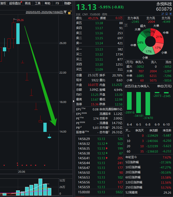 6月1日儿童节,永悦科技给持股人开了个玩笑,开盘一分钟内从28.69元高位砸至跌停,此后6个交易日5个跌停,今天依然大跌,区间跌幅近55%。