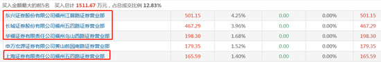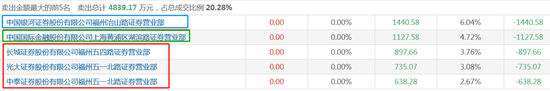 来看下1月8日当日的龙虎榜单,卖二是中金上海湖滨路营业部,卖一三四五席位都是坐落于福州的券商营业部。