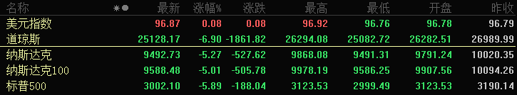 SMM6月12日讯:夜间,美股集体大幅下跌,道指收跌逾1860点或6.9%,纳指跌5.27%,标普500指数跌5.89%。其中,美国航空跌超15%,能源板块也有不同程度下跌。