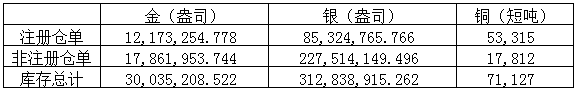 2020年6月11日COMEX金属库存