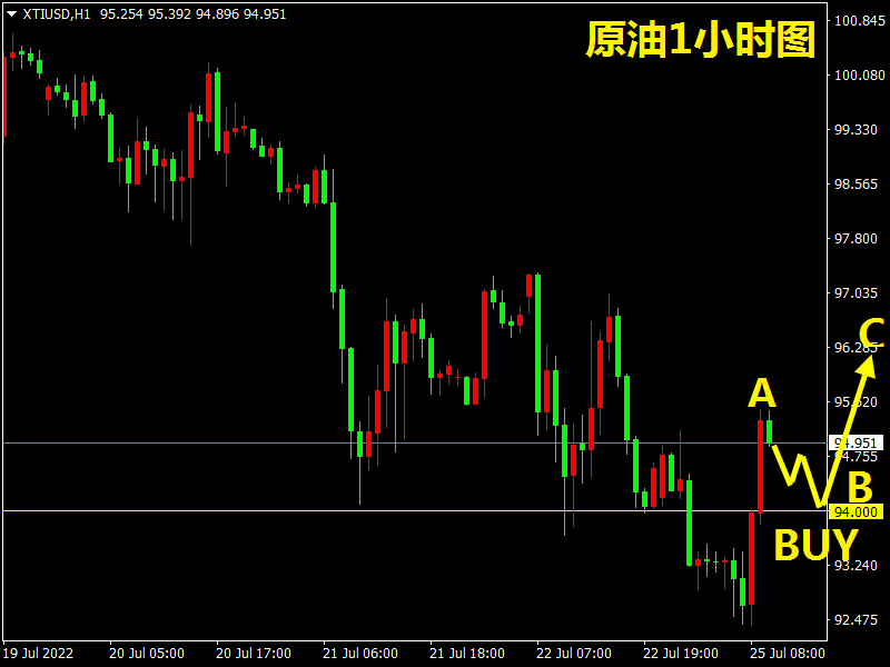 技术面看,原油日线图下降趋势运行,目前超跌反弹受阻二次下行,整体的下行通道非常完美,预计中期继续回落的概率较大;小时图超跌反弹局面,目前反弹势头比较强劲,预计短期向上反弹的概率比较高。欧美盘操作建议,原油94.0做多,止损93.4,目标95.0-96.0,安全指数★★★★☆。