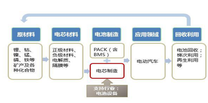 动力电池的基本单位为电芯,多个电芯构成电池模组,再由多个模组构成电池系统。电芯主要有圆柱形、方形、软包三种方式。