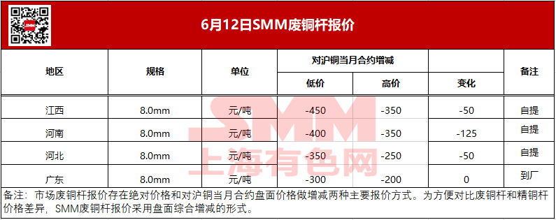 6月12日SMM废铜杆报价