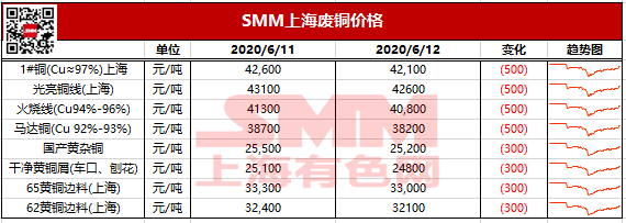 6月12日上海地区废铜报价