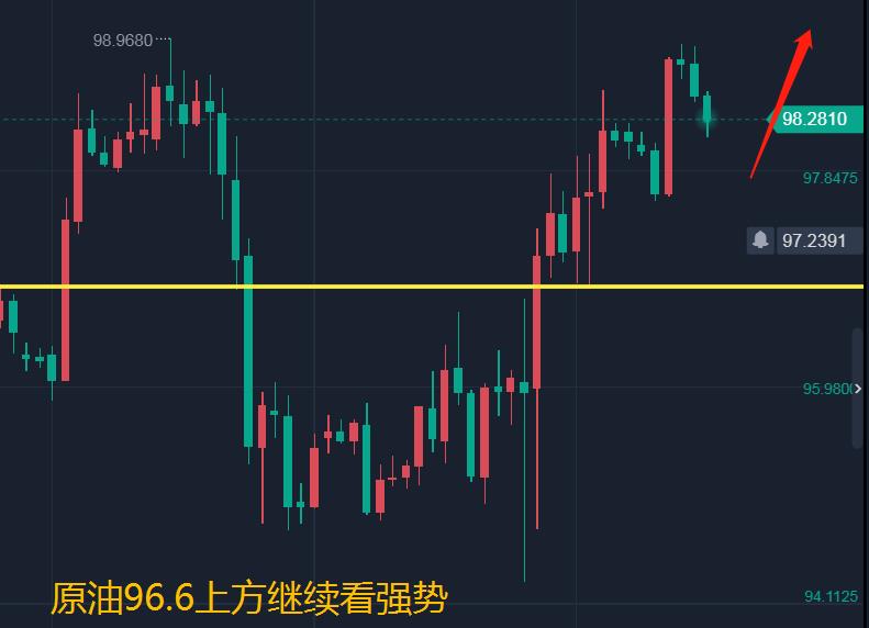 原油昨天整体走势震荡偏强,白盘反复测试支撑94.5附近,而晚间在加速赶底不破新低的情况下,走出反弹,我们日内多次在95和94.5给出多单都是反弹获利,一般在上涨或者下跌行情接近尾声的时候,都会有一个急速的过程,只要加速不破位,那么反转的可能性会很大,就像昨晚的加速下跌一样,而形态上也是一个筑底的过程,悬壶上周就在说原油有望构建头肩底,而经线位置就在94.5附近。日内继续看涨,H4方面已经发力,支撑上97.8多,给97.3加仓,损96.3,看99-100.5.日内阻力关注101附近即可,届时看是否可以短空!原油日内只要不破96.6回撤就是多!