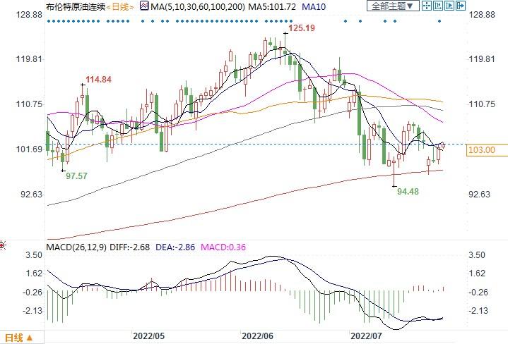 北京时间7月28日13:10 布伦特原油连续 报 103美元/桶