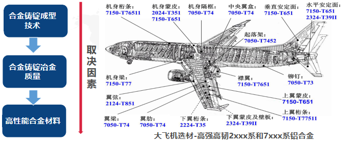 随着航空航天领域的发展,民用客机、航天飞行器、军机等领域对高强高韧铝合金综合性能的要求越来越高。基本上采用合金为2XXX和7XXX铝合金,近些年国内飞机材料基本采用2024、2124、7050/7150/7055等,如何获得高性能铝合金材料,合金铸锭的冶金质量至关重要。