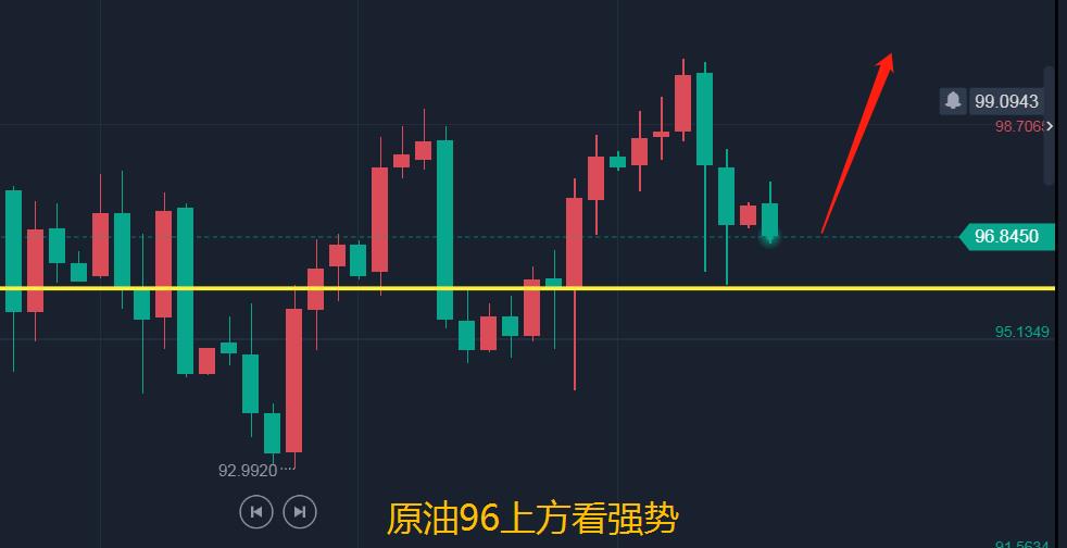 原油昨天整体走势再次上演冲高回落,这也是最近行情的一大特色,多空延续都不强,但又感觉在延续,昨天我们白盘98.3多单赚钱没出反被止损,不过还好晚间再次给出96.5多单迎来反弹止盈98.日线收取一根上下引线等长的小阳,这样的收线就是多头在蓄力,依然保持看涨不变,所以目前我们需要等待。而行情目前走出一波急跌,那么这就是我们做多的机会,所以现价96.8直接多,给96.3加仓,损95.5,看98.5-99.5!