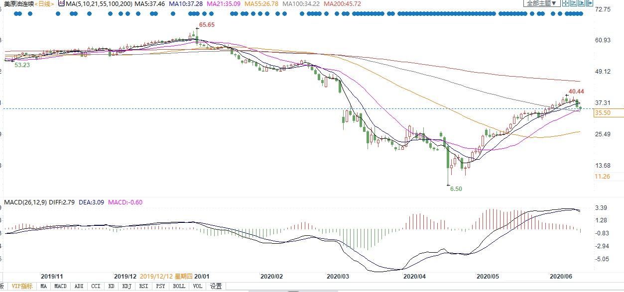 上周末,OPEC+承诺延长减产,市场对此整体反应不大。此外,美国库存攀升至历史新高,而美联储警告称,疫情恐对美国经济造成长期损害,从而导致市场情绪本周出现恶化。感染激增的担忧情绪导致金融市场下滑,美油也因此遭到拖累,目前已经回落至每桶36美元以下。