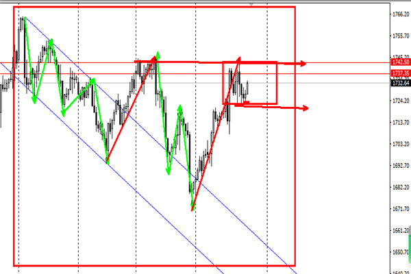 黄金小时图显示,黄金在连续的上涨后,站上了均线系统,进一步走高,最高给到了1745水平出现了遇阻,随后金价出现回撤走势,金价在触及1722位置出现了企稳迹象,运行在一个震荡箱体1745-1722区间,综合来看莫千机认为,黄金在日线级别出现收阴线迹象,进一步表明了多头上涨出现遇阻迹象,今日交易上考虑高空低多策略,上方关注1745-1750美元阻力,下方关注1722-1720美元支撑。