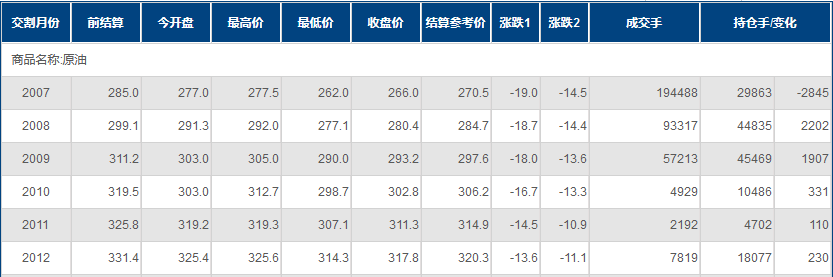 期货合约和成交情况一览