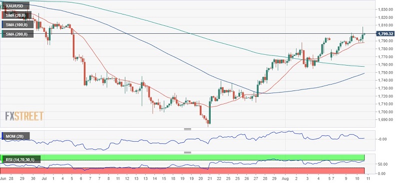 Bednarik指出,在美国低于预期的通胀数据出炉后,周三金价一度升至1807.86美元/盎司,但未能维持涨幅。眼下黄金多头正努力攻克1800美元/盎司关口。