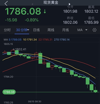 香港时间16:25,现货黄金报1786.08元/盎司。
