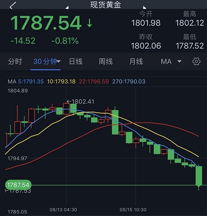 预计今日金价交投将位于支撑位1780.00美元/盎司以及阻力位1815.00美元/盎司之间。