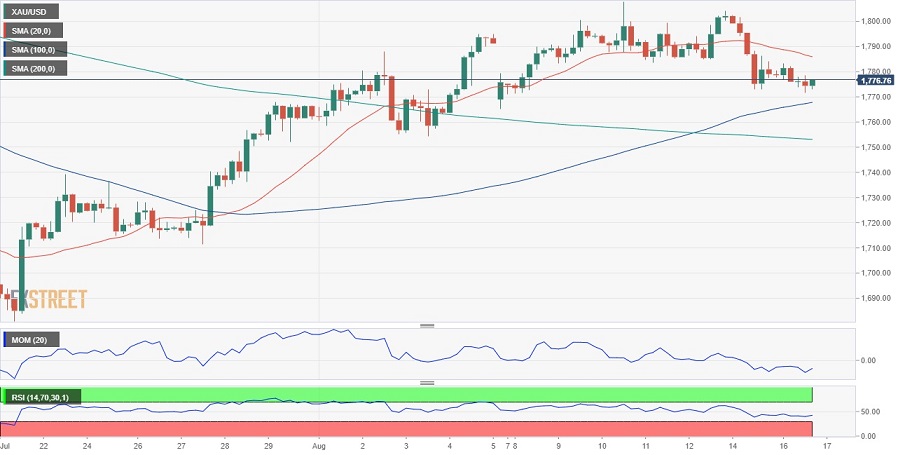Bednarik表示,黄金日线图显示,买盘兴趣持续减弱。金价走势呈现低点和高点不断下移态势,目前金价接近看涨的20日简单移动平均线(SMA),该均线在1761.10美元/盎司附近提供支撑。与此同时,100日SMA在下穿200日SMA后加速下滑。此外,技术指标维持下行趋势,不过目前仍高于中线。