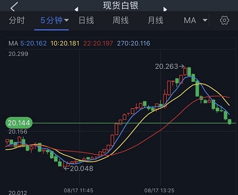 (现货白银5分钟图 来源:指股网)