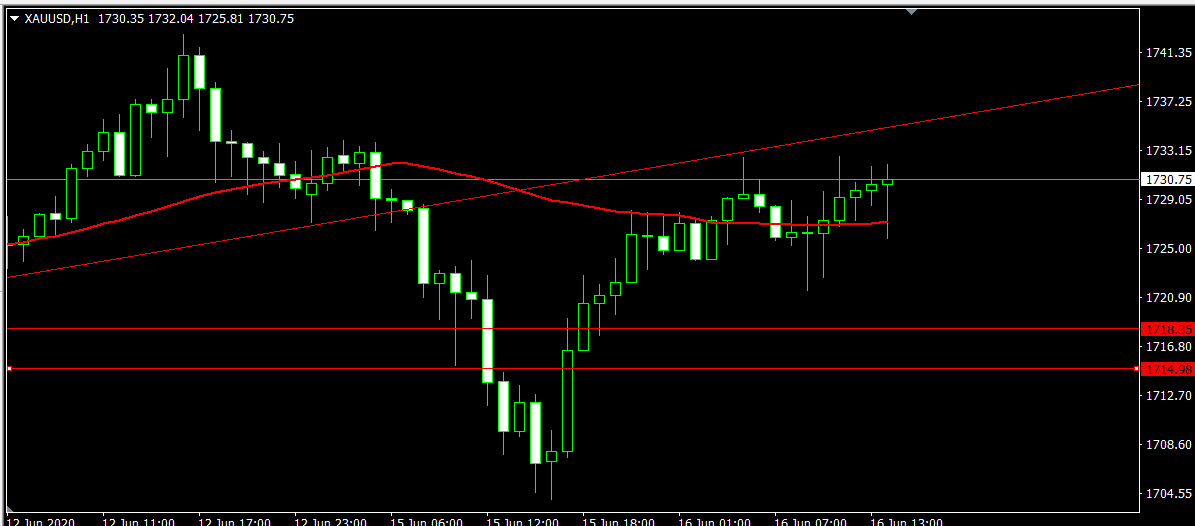 然后黄金又迅速回收,美盘前我们再次在1725附近做多,行情很给力直接拉升至1732一线。