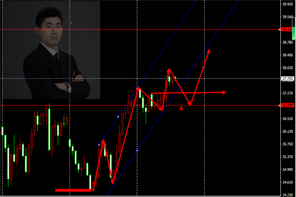 原油亚盘开盘在37.026美元/桶,开盘后出现走低36.36位置得到支撑,油价上涨,最高给到37.917美元/桶位置,目前运行在37.66水平,原油在一波连续下跌后触及34.33位置得到支撑,出现了上涨,改变了周初原油偏空格局,在支撑位置,首先关注36.85位置支撑,然后将考验36.3美元/桶,综合来看莫千机认为晚间交易上考虑回撤布局多单为主,上方关注38.5-39.5美元/桶阻力,下方关注36.9-36.3美元/桶支撑。假如油价下破36.0美元/桶,这将止住预期中的看涨趋势,并推动油价重拾次要看跌趋势。今日对于原油价格的预期趋势为看涨。 (现货油小时图 来源:莫千机)