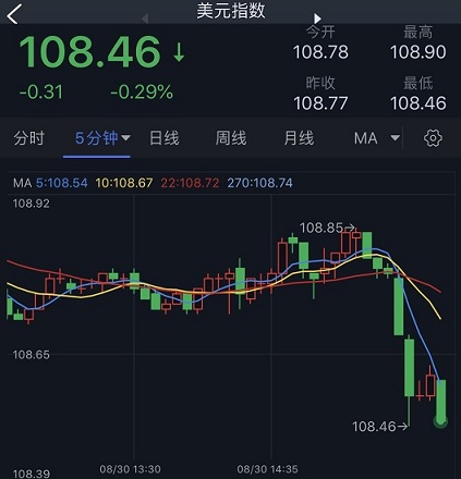(美元指数5分钟图 来源:FX168)
