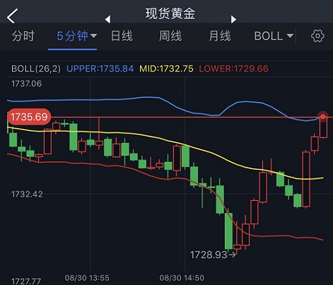 (现货黄金5分钟图 来源:FX168)