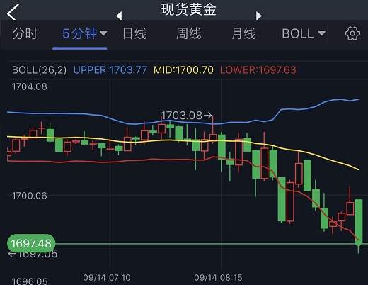 (现货黄金5分钟图 来源:指股网)
