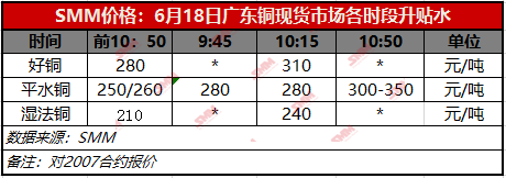 【SMM价格】6月18日广东铜现货市场各时段升贴水(第三时段)