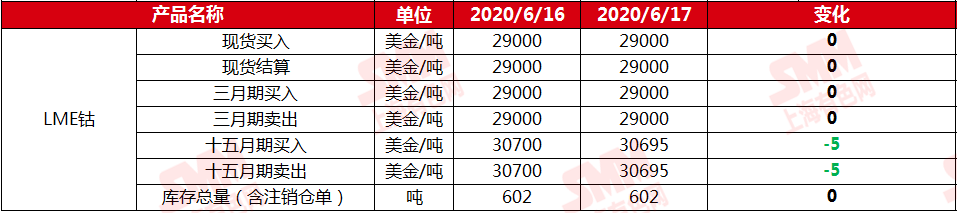 SMM网讯:2020年6月17日LME钴期货官方报价: