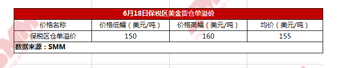 6月18日保税区仓单溢价