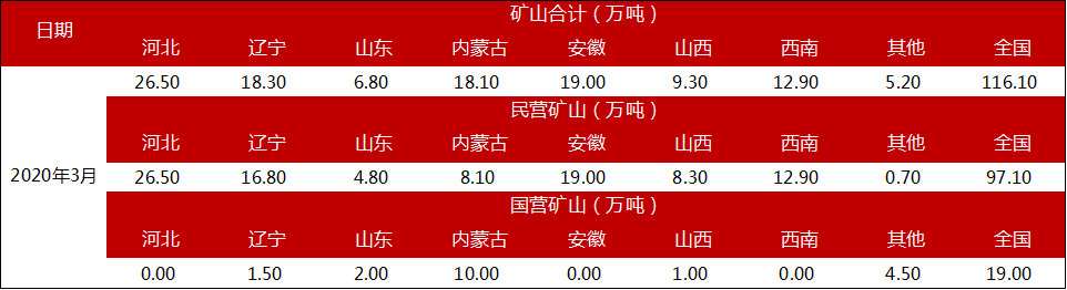 3月全国铁精粉库存