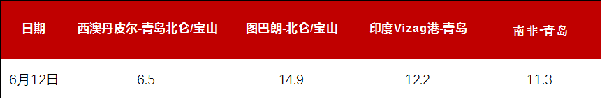 6月12日进口矿海运费