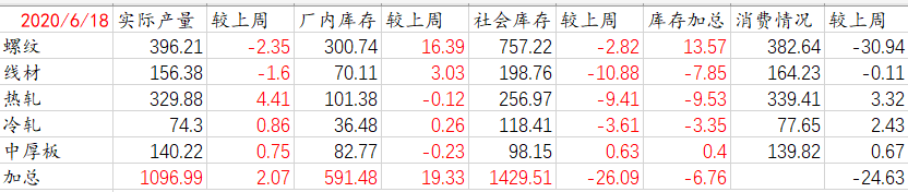 社库库存:五大品种降幅26.09万吨至1423.43万吨 ,螺纹钢降幅2.82万吨至755.52万吨,热轧降幅9.41万吨至248.61万吨。