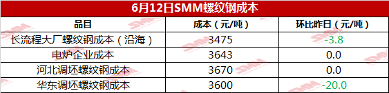 6月12日螺纹钢成本跟踪