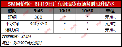 【SMM价格】6月19日广东铜现货市场各时段升贴水(第一时段)