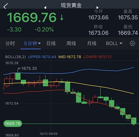 香港时间10:22,现货黄金报1669.76美元/盎司。