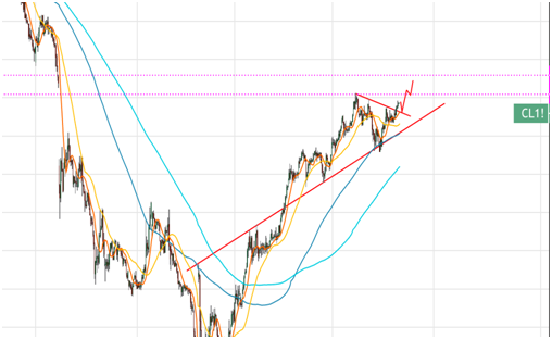 市场对世界部分地区报告新增新冠病例感到担忧,但因欧佩克及欧佩克+联盟的部长级委员会召开会议,对创纪录的减产协议进行评估,油价周四(6月18日)走出强势反弹,小时图走出W反转形态,