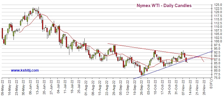WTI原油期货已跌破支撑位87.50-86.50美元/桶。只要低于87.50美元/桶,那么WTI油价在未来几个交易日仍有进一步跌向80美元/桶的空间。